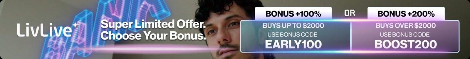 LivLive ($LIVE) has taken an aggressive approach to early-stage adoption by activating a flash sale during a market dip. Instead of slowing momentum, the downturn triggered its strongest bonus structure to date. Buyers can double or triple their allocations instantly, creating an environment where hesitation becomes costly and early participation becomes the engine for oversized upside before Stage 1 closes.