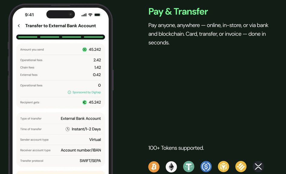 Digitap differentiates itself by offering a live omni-banking platform that integrates crypto and fiat services within a single ecosystem. Users can manage assets, transfer funds, and interact with traditional payment rails without relying on multiple third-party applications. The platform currently supports more than 100 digital assets.