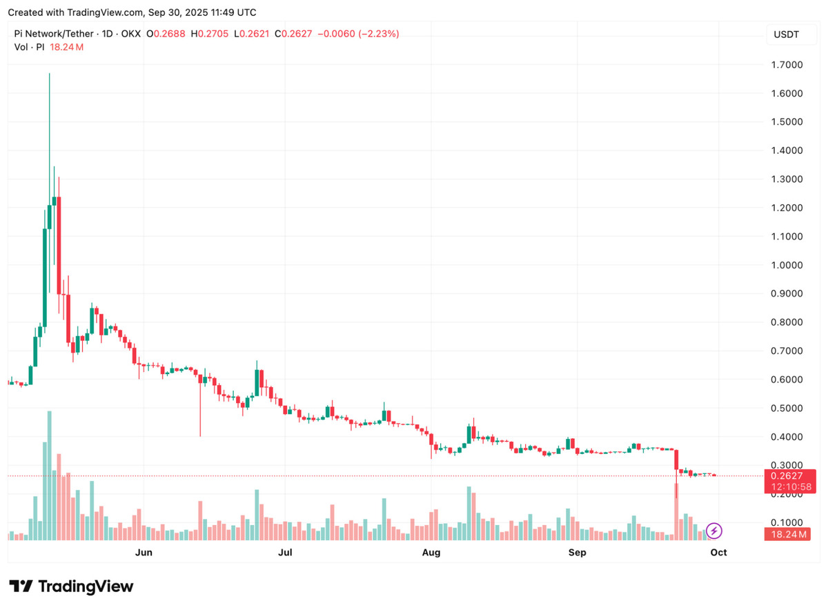 Interest is especially high in India and Pakistan, with users checking ā1 Pi to PKR in 2025ā and āPi Network price in India in the future.ā Despite this, bearish pressure has been strong, with the token hitting a new all-time low of $0.1851 in September.