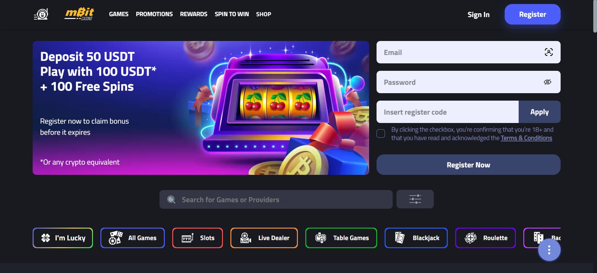 mBit Casino is built for high-stakes players seeking variety and fast crypto transactions. Supporting Bitcoin, Ethereum, and other tokens, mBit offers a huge selection of slots, table games, and live dealer tables. The platform is mobile-optimized, provably fair, and designed to give US players a secure, engaging experience across all game types.