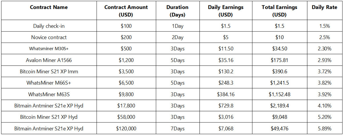 – Flexible Contract Terms: Options from 24 to 60 months, ideal for users seeking long-term stable returns.
