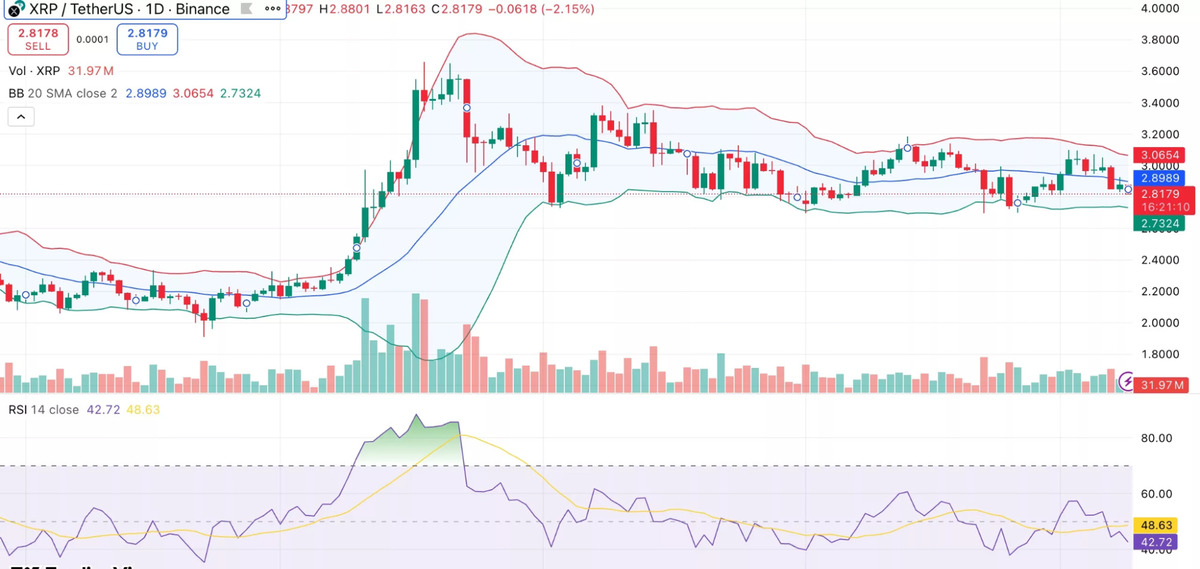XRP is now at $2.80. According to the latest CoinGlass data, the volume and open interest are dropping, an indicator that traders are awaiting ETF verdicts. Analysts believe that once these rulings are given, XRP could rally toward $3.30–$5, with potential to hit $12 if ETFs are approved.