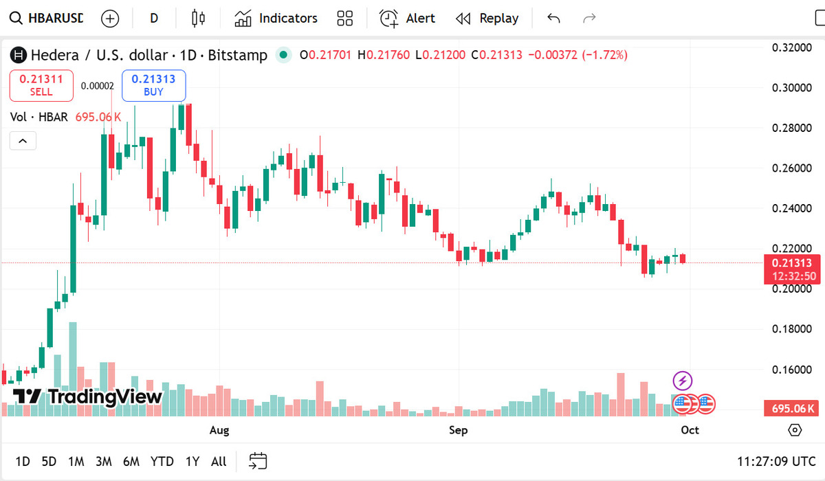 Hedera (HBAR) has long been considered a reliable option in the altcoin sector. Priced at $0.2131 currently, the token has experienced a marginal decline of 0.12% in the last day. In spite of that, its market capitalization of $9.01 billion highlights its strength.Ā