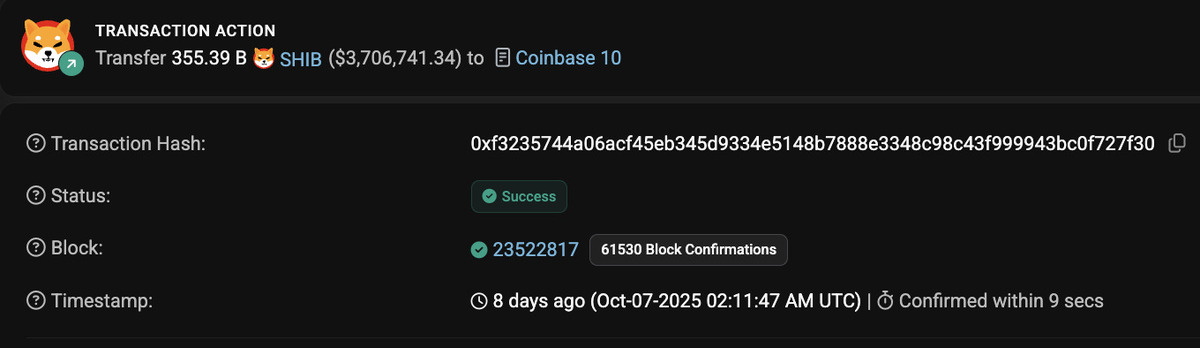 Shiba Inu’s charm is fading. And whales dumping SHIB proves it. Just a week ago, a SHIB whale dumped 335 billion tokens worth $3.7 million on Coinbase.