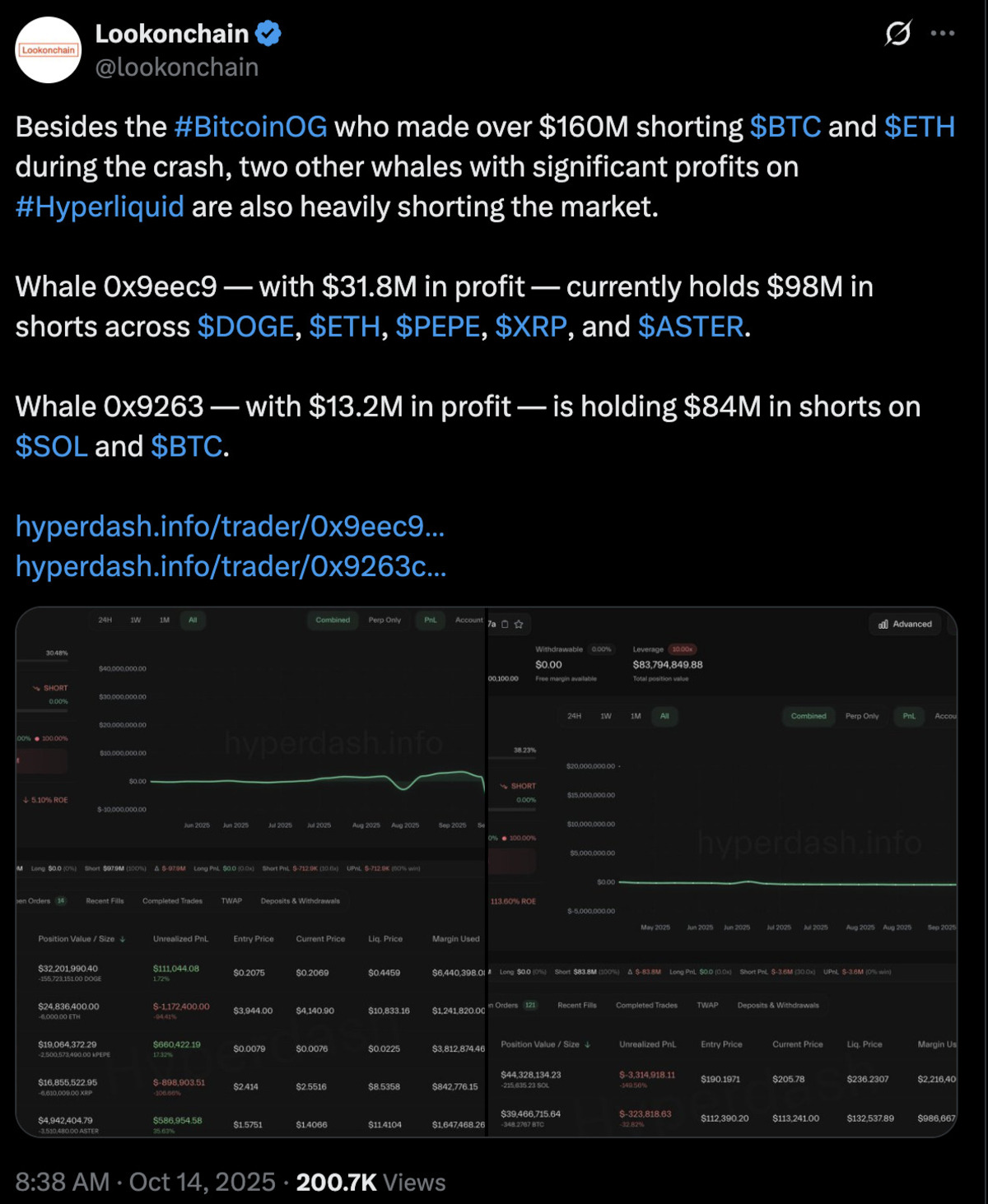 After a $19 billion liquidation wiped out the market in hours on October 10, 2025, crypto’s big whales seem to be switching lanes. Shiba Inu (SHIB) and Dogecoin (DOGE) whales look tired of relying on hype. Billions in SHIB have hit exchanges, while one Dogecoin trader now holds a massive $32 million short.