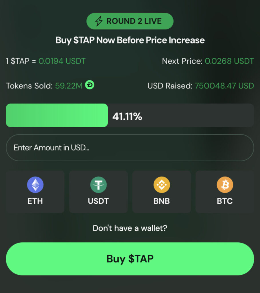 At $0.0194 in Stage 3, $TAP has already climbed 56% since the start of the presale. And the next 38% price jump to $0.0268 in Stage 4 could be right around the corner. The speed of this growth (with over 60 million tokens sold) means that whales are turning fast toward projects with solid use cases.