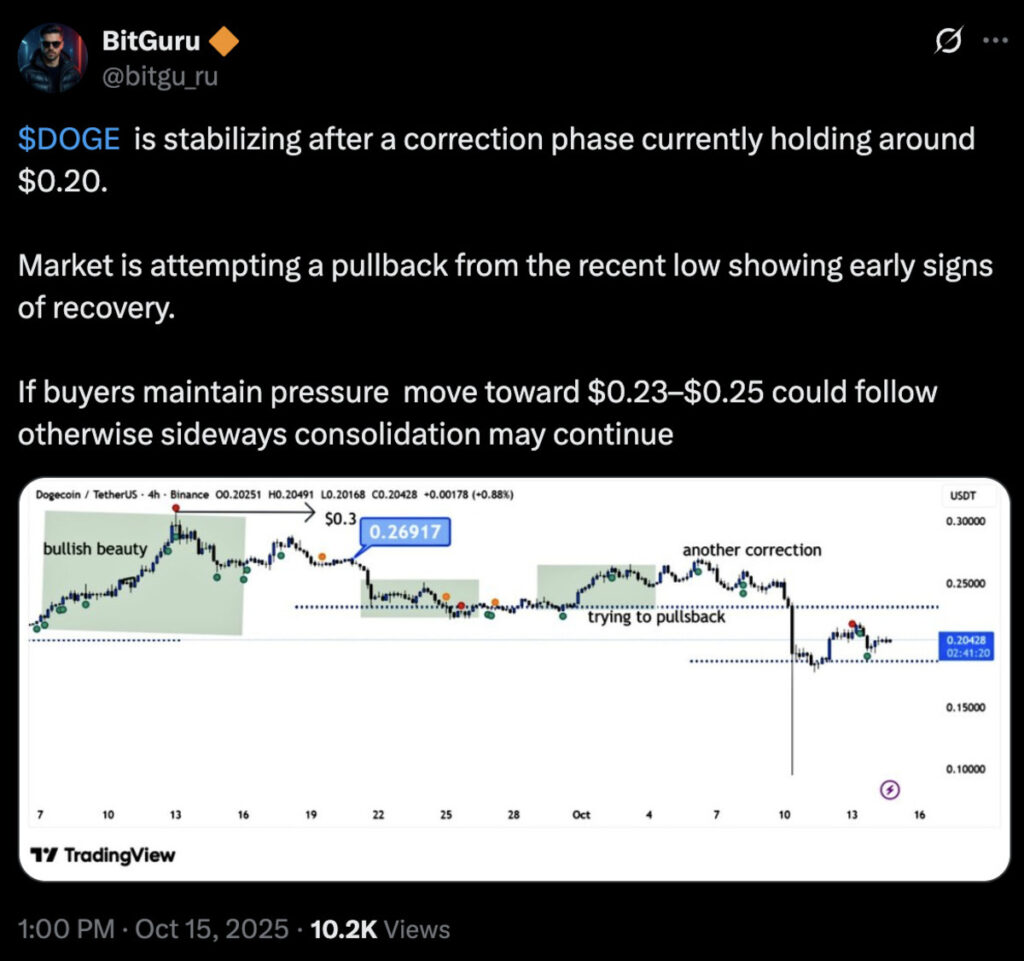 Analyst BitGuru calls the market stabilizing. But even the analyst notes that a push beyond $0.25 depends on buyers holding the line.