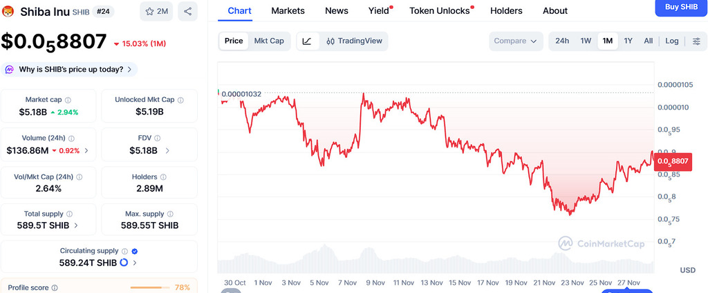 Shiba Inu (SHIB), presently around $0.000008807, keeps forming a sturdy basis for a capacity breakout. The token sits quite simply above aid degrees at $0.00000851, $0.00000819, and $0.00000792, areas wherein long-term holders and retail traders continually acquire. These support zones mirror the passion returning to the meme-coin quarter and highlight SHIB’s resilience as broader market sentiment improves.