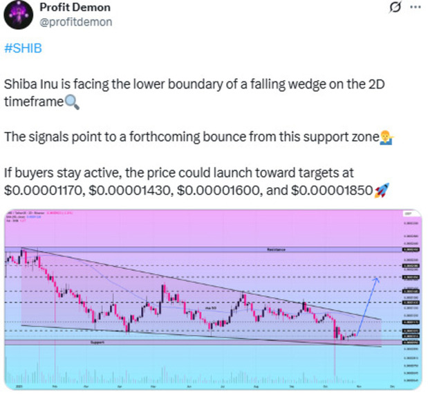 But is a rebound on the way, and is SHIB among the high-potential altcoins to buy in Q4? Crypto analyst Profit Demon predicts a forthcoming bounce from the current support zone. The Shiba Inu coin may retest $0.000011, $0.000016, and $0.000018, they added.