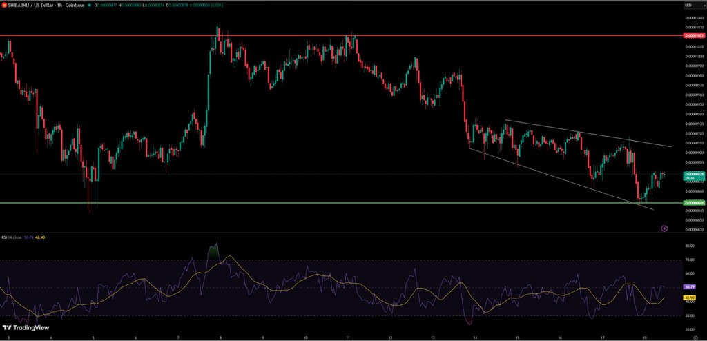 The Shiba Inu price has fallen more than 10% over the past month after experiencing strong rejection near the $0.000010 resistance zone. SHIB dropped below $0.0000085 but bounced rapidly, reflecting a pattern similar to the earlier rebound near $0.0000088 at the start of the month.Ā