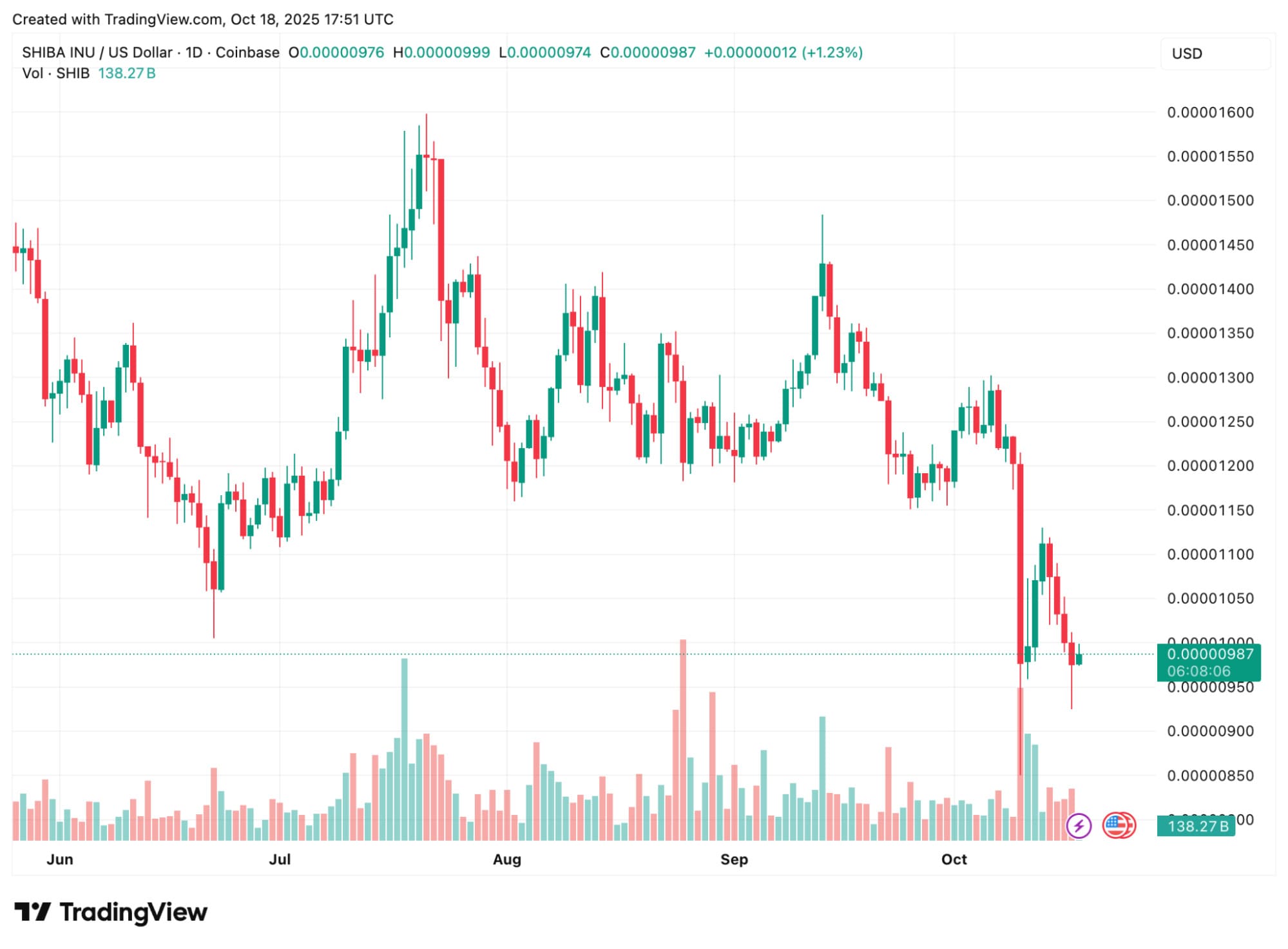 Shiba Inu is currently priced at $0.00000987. Traders watching the Shiba Inu price prediction note SHIB is holding a tight band, roughly $0.000010 to $0.000011, a classic base that often forms before breakouts. Momentum gauges, like a neutral RSI near the mid-40s and a flat 20-EMA on the 4-hour, point to balance, not weakness.Ā