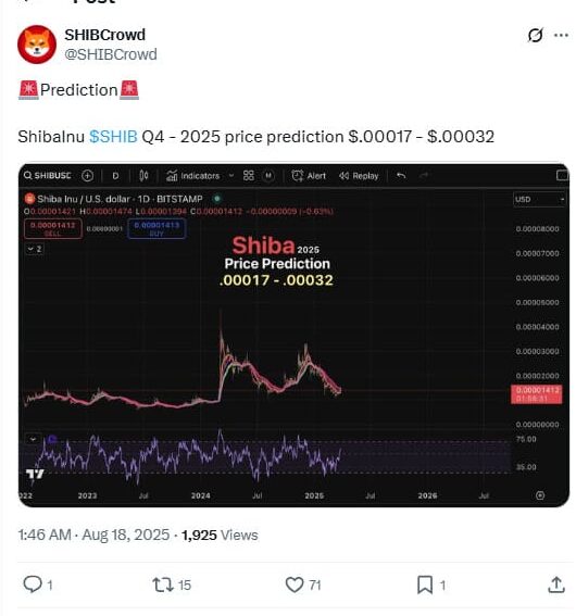 Gunning for a retest of its 2021 all-time high of $0.000088, now might be a good time to have exposure to the Shiba Inu coin. SHIBCrowd, brimming with confidence, made a bold Shiba Inu price prediction by targeting $0.00032 in Q4.Ā Ā