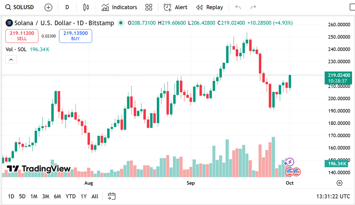 In looking at any Solana Price Prediction, investors are prone to look at its current market performance as a gauge of long-term potential. At $219.11, with a market cap of $112.28 billion and a volume of $7.24 billion (up 35.85%) in the past 24 hours, Solana continues to hold its own in the competitive Layer 1 landscape.Ā