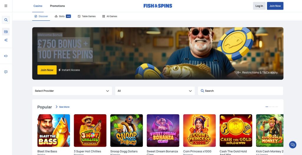 Fish&Spins is one of the best casinos not on Gamstop for UK players who want a casino experience that’s straightforward and excellent. The design is clean, modern, and built for players who don’t want to get lost in cluttered lobbies.