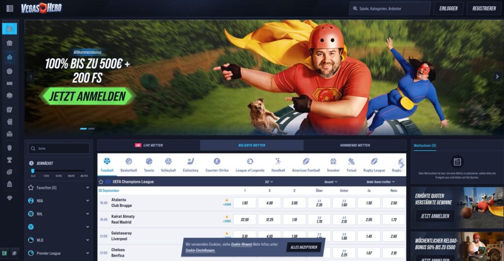 Vegas Hero’s catalogue balances slots, jackpots, Megaways, and fishing-themed games with table classics and live casino streaming in HD. Standout slots rotate frequently, but popular names from top providers are always present. Crash and instant win games are also included.
