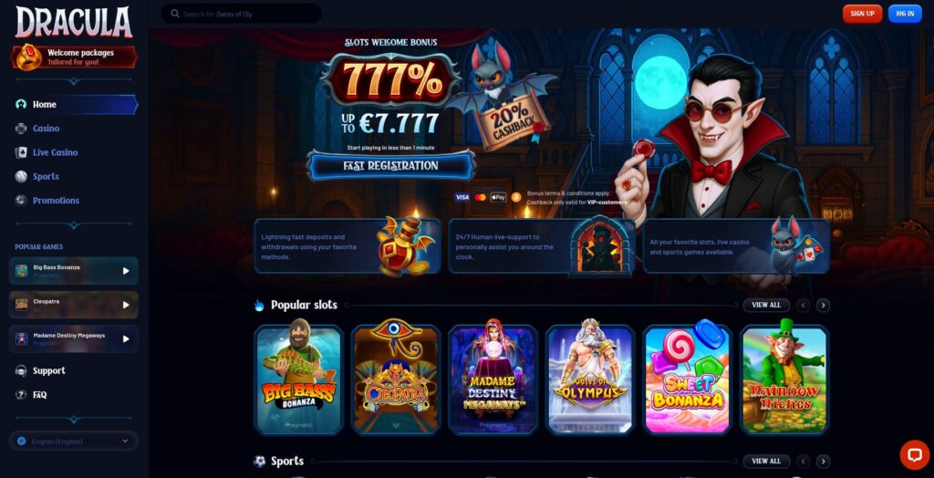 8. Dracula Casino: 24/7 Human Support and Lightning-Fast Withdrawals
