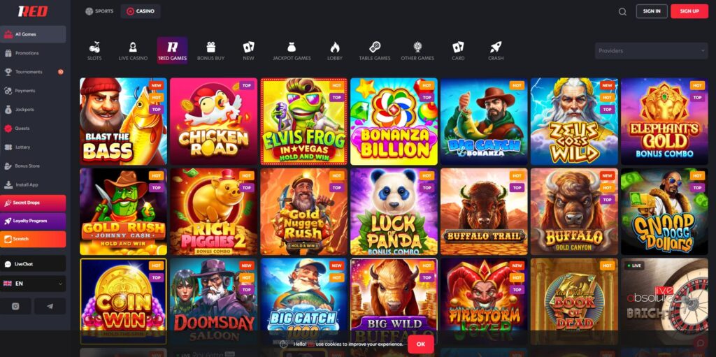 9. 1Red Casino: Massive Game Library with Crypto
