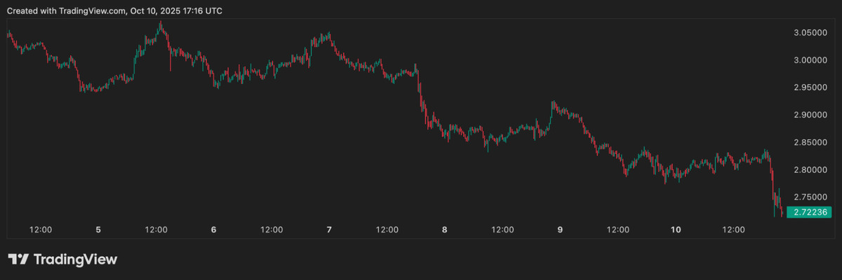 XRP seems to be under heavy pressure. The Ripple coin now trades at $2.72 after over a 10% drop from last weekās high above $3.