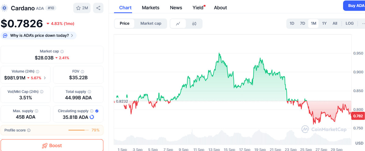 Cardano (ADA), trading at around $0.80, remains one of the most essentially solid yet undervalued properties within the market. Known for its peer-reviewed research and awareness of sustainability, Cardano has constructed a strong popularity among long-term traders. Its roadmap includes governance upgrades and scaling upgrades, making it a serious project within the smart contract space.