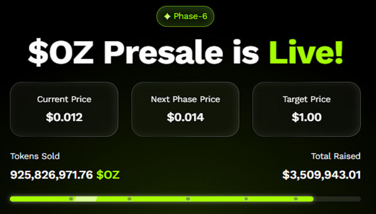 Ozak AI has quickly become one of the most talked-about presales of 2025. Priced at just $0.012 in its 6th stage, it has already raised more than $3.5 million and sold 925 million tokens, signaling strong investor demand. Unlike speculative meme coins, Ozak AI is grounded in utility, aiming to merge artificial intelligence with blockchain through its AI-powered prediction agents.