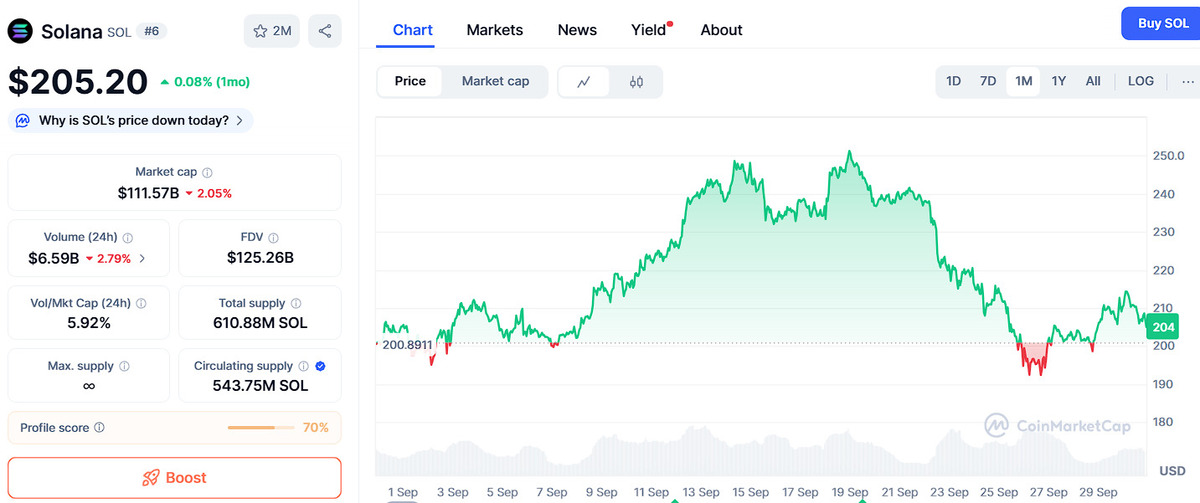 From a technical perspective, Solana faces resistance at $220, $240, and $280, while support lies at $190, $170, and $150. A breakout above $240 could open the door for a strong rally toward $300 and beyond.