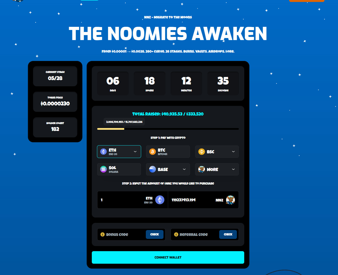 Noomez also uses a 10% referral system, and early buyers can still activate a 250% bonus using code BONUS250, a limited window that won’t be available in later stages.