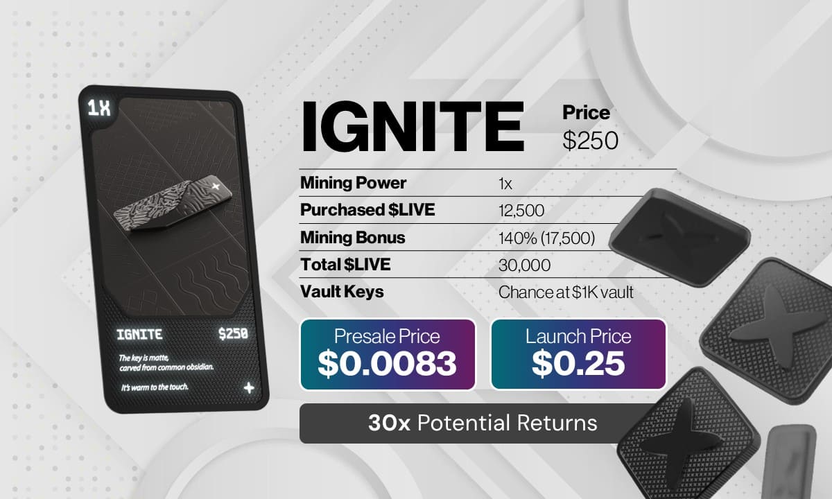 Adding to the 30x launch price is one of the biggest crypto giveaways in the industry. Every $LIVE presale pack comes with an NFT key, some of which will unlock digital vaults holding a share of a $2.5 million reward pool.
