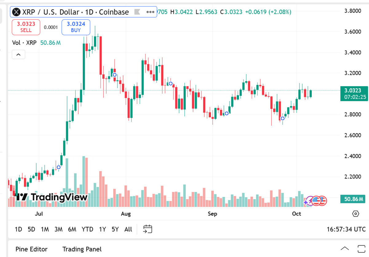 The price of XRP is $3.03, having a 1.28%Ā 24 hour decrease and a market cap of $179.07 billion with $4.84 billion trading volume, down 6.9%. XRP has, however, continued to bask in its long-standing role in cross-border payments and ongoing adoption on centralized exchanges.