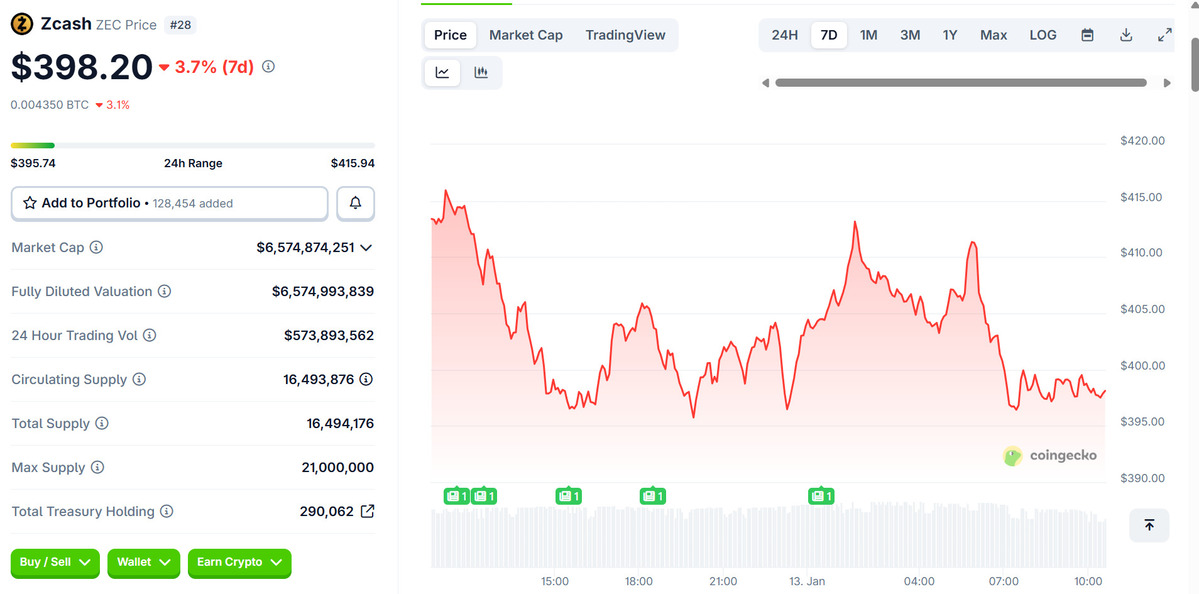 The Zcash price, a privacy‑focused cryptocurrency that uses zero‑knowledge proof technology to enable shielded transactions, has remained near recent levels after a rebound near resistance zones.