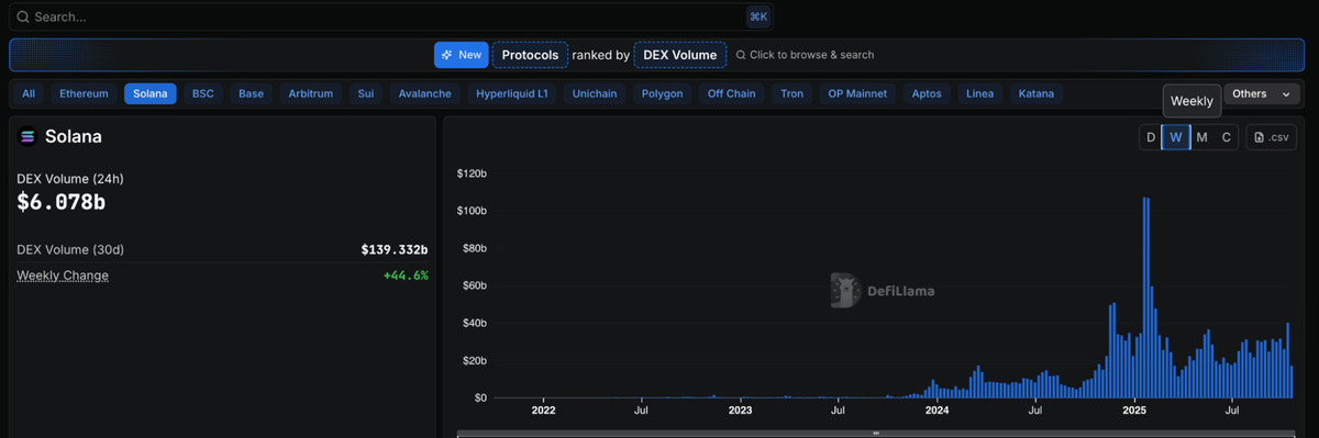 According to DefiLlama, Solana recorded over $140 billion in DEX trading volume, a sign that on-chain activity remains active. On the charts, SOL formed higher highs and lows during the second half of 2025 — a structure that points toward gradual recovery.