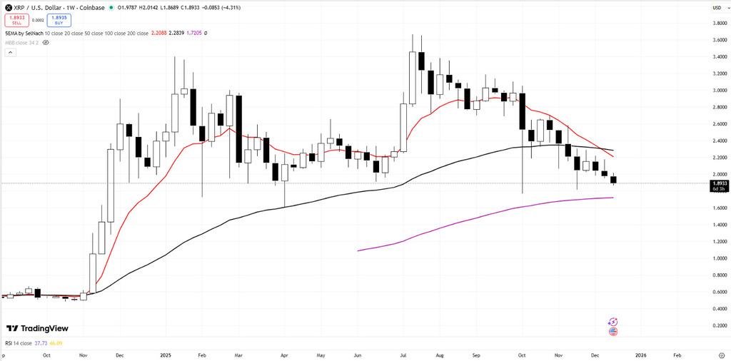XRP has traded lower since July, with limited periods of relief. While it was one of the earlier crypto assets to focus on paymentsāparticularly cross-border paymentsācompetition has increased, including from stablecoins used for settlement.