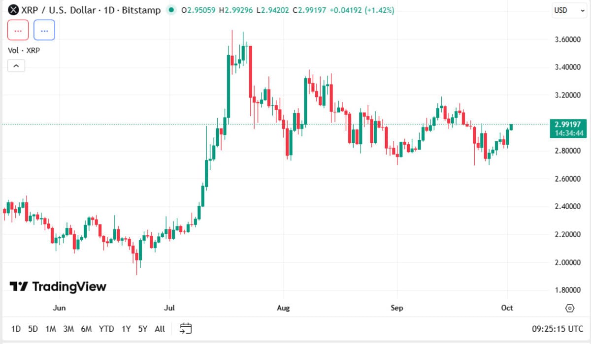 Today’s XRP price trades around the $3 mark after a strong Q3. Traders frame October as a test of momentum and policy. They watch liquidity, exchange inventories, and any spot ETF updates. Institutional desks also track Swift’s timeline and bank pilots. The setup adds fuel to a broader “Uptober” narrative that often lifts majors and strong large-cap altcoins.