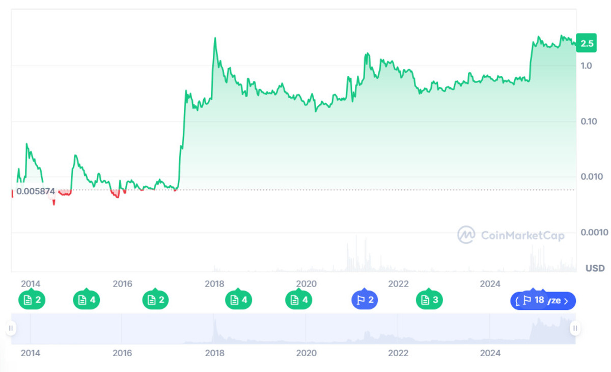 According to the latest XRP price prediction, the coin may hit $4.02 by next year. Currently, XRP’s price stands at $2.50, up by 4.07% in the past 24 hours. The trading volume has increased by 31% as traders positioned for the ETF event, and the token surpassed the $2.45 barrier that had limited its growth earlier in the week, indicating strong institutional interest.