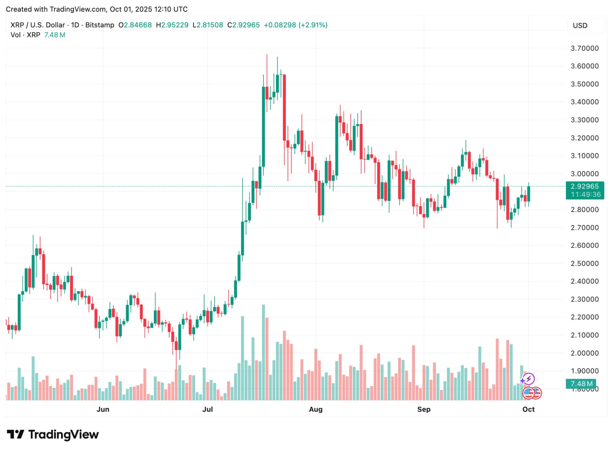 On-chain data supports cautious optimism. Exchange outflows of $2 million on October 1 show that investors are moving XRP into private wallets, rather than selling. This trend has continued since mid-September and helps maintain stabilityThere has also been a high-profile promotion of XRP through high-profile endorsements, which have focused on the fast, low-cost settlement possibilities of the coin.